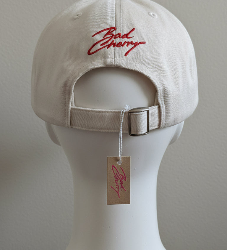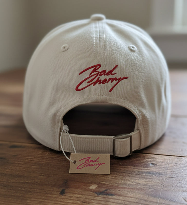 BadCherry Embroidered Logo Cap – Adjustable Cream White Cotton Baseball Hat | Minimal Streetwear Unisex