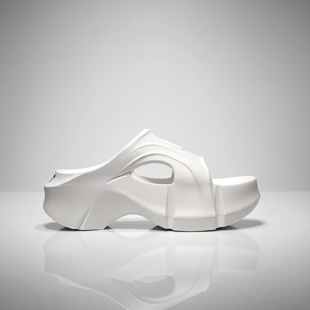 Step into effortless comfort with Elevated Slippers. Featuring sculpted wave-inspired curves and breathable cut-outs, these sandals combine futuristic design with all-day wearability. The lightweight EVA sole provides soft cushioning and stable support, making them perfect for lounging indoors or making a bold statement outdoors.